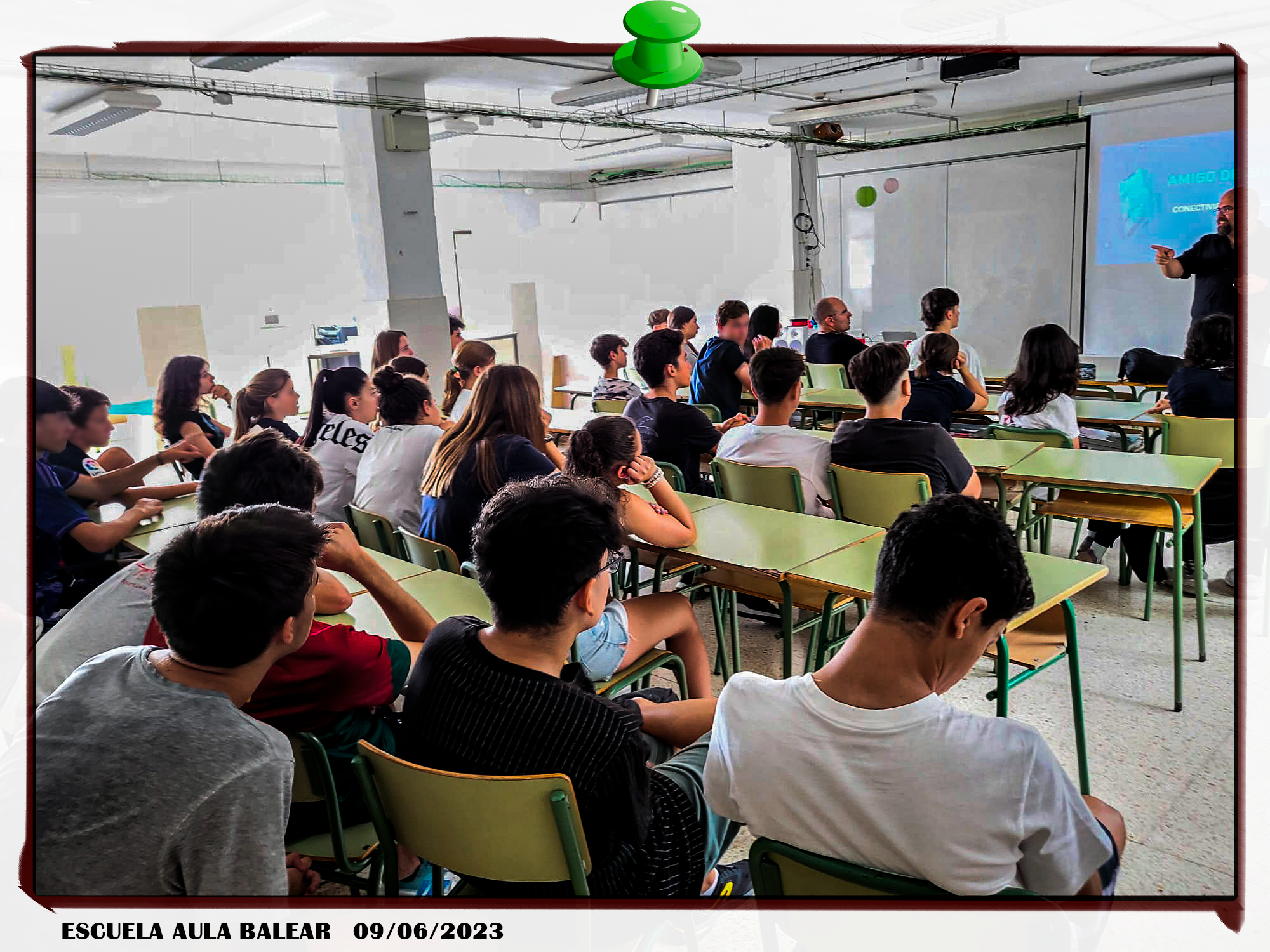 El 9 de junio de los actuales visitamos el centro educativo Aula Balear de Palma, donde su directora, Dñª. Pilar Sánchez Riesco y el profesorado del mismo, nos atendieron estupendamente y nos proporcionaron todos los medios necesarios para poder dar la charla educativa de una forma efectiva en sus aulas.